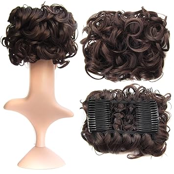 Amazon Com Swacc Short Messy Curly Dish Hair Bun Extension Easy Stretch Hair Combs Clip In Ponytail Extension Scrunchie Chignon Tray Ponytail Hairpieces Dark Brown 4 Beauty Personal Care