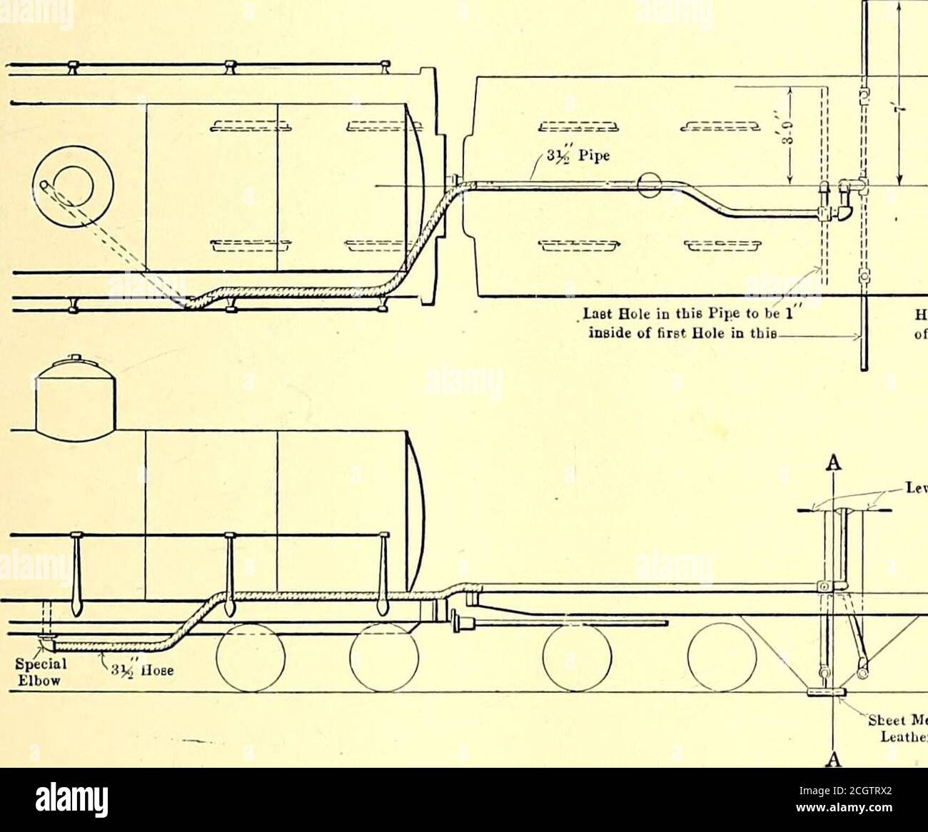 Die Strassenbahnzeitung Von Der Auslassoffnung Unter Dem Tankwagen Hinauf Und Entlang Der Seite Des Tankwagens Bis Zur Anlieferung Auf Den Motor Flachwagen Die Flexibilitat Des Schlauches Per Aufnahme Von Durchgangskurven Ohne Probleme