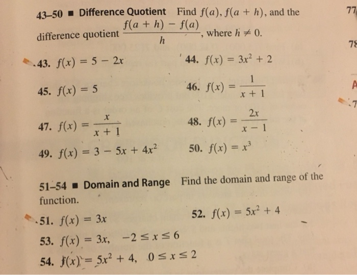 Solved 43 50 Difference Quotient Find F A F A H And The Chegg Com